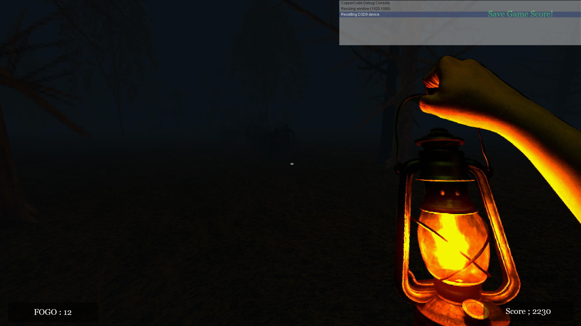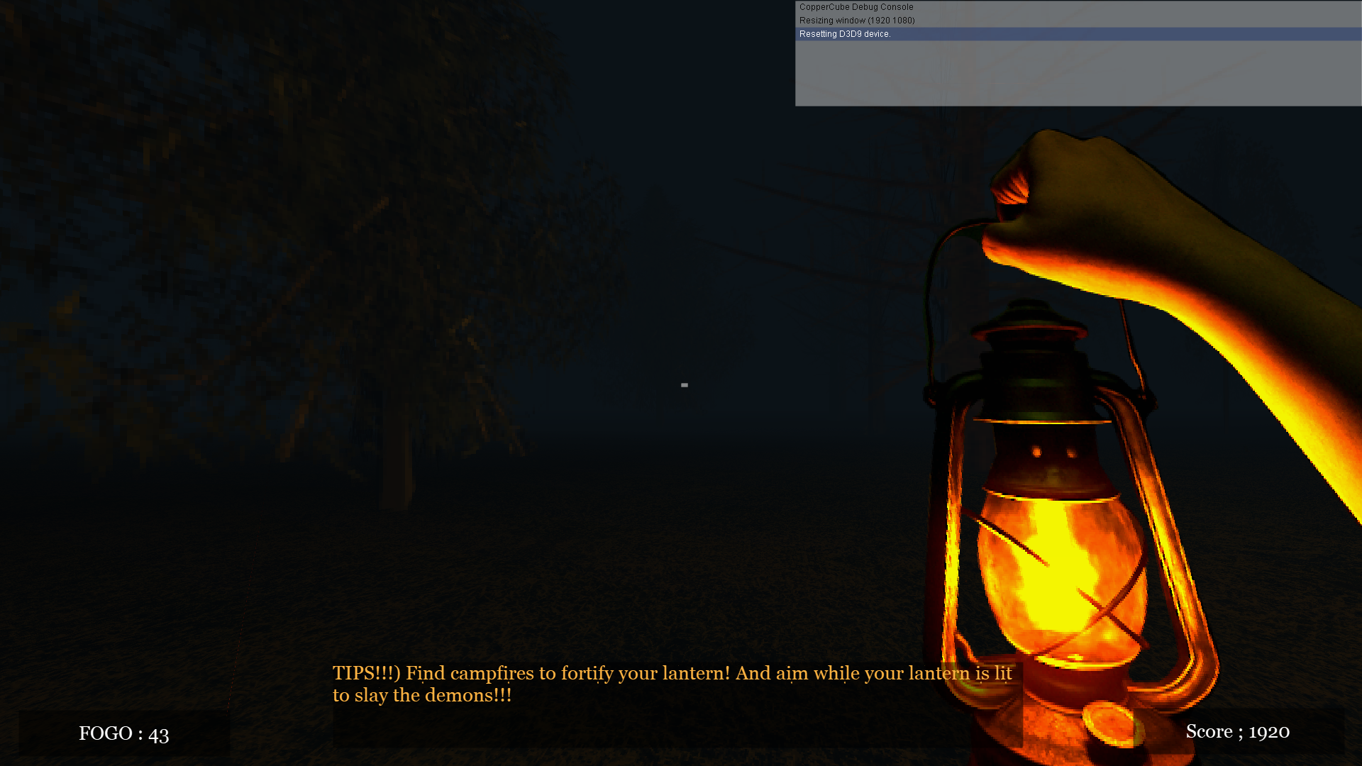 Basic horror game with light and simple mechanics. Always run, don't let the demons catch you! Use the lamplight to kill the creatures! Find campfires to light the lamp.